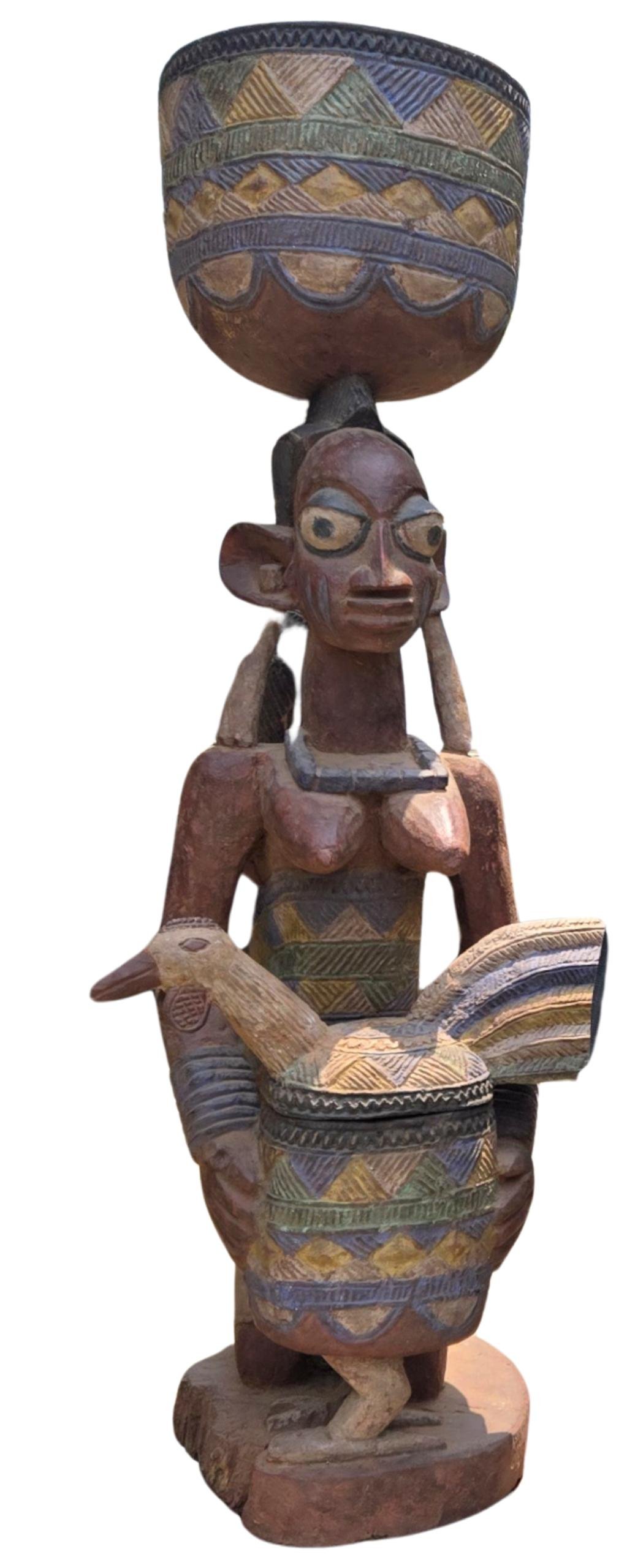 The statue was used in rituals and ceremonies, holding kola nuts, herbs, or other sacred offerings. It played a role in prayers, blessings, and spiritual practices, placed in shrines or communal spaces.